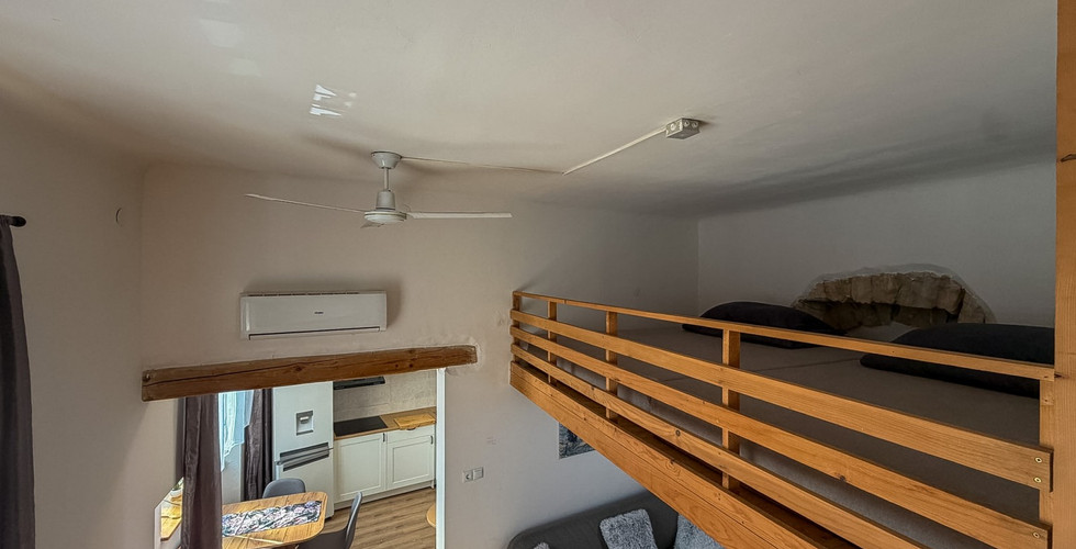 Byt se skládá z koupelny, kuchyně s jídelním koutem, obývacího pokoje a galerie, kde se nachází příjemný prostor na spaní. Byt byl zrekonstruován před 2 měsíci, je kompletně vybavený a připravený k nastěhování. Je ideální volbou pro pár nebo jednotlivce, kteří si chtějí užívat vše, co nabízí městský život tohoto přímořského města.