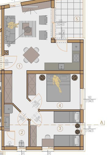 Byt B3 o ploše 59,25 m² (čistá plocha 56,10 m²) bude zahrnovat kuchyň s obývacím pokojem a jídelnou, 2 ložnice, koupelnu a terasu.