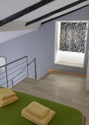Skládá se z malé předsíně, koupelny, kuchyně s jídelnou a obývacím pokojem v jednom a ložnice v galerii, která má vlastní okno, které dává možnost zcela oddělit tento prostor.