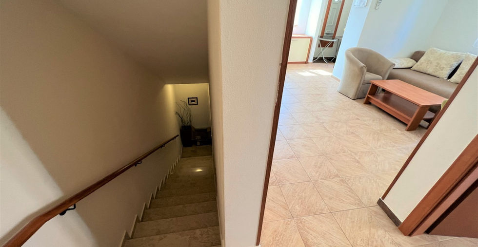 Byt má dvě podlaží, jedna část v přízemí, jedna část v suterénu.