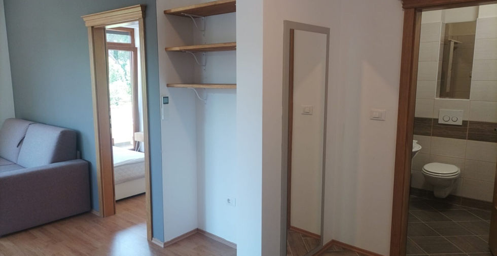 Byt je kompletně vybavený a zařízený, nikdy nebyl používán. V bytě je klimatizace, interkom, bezpečnostní dveře, na oknech jsou sítě proti hmyzu a elektrické žaluzie. V bytě jsou 2 velké terasy, na jednu se vychází z ložnice, na druhou z obývacího pokoje a je na ní postaven gril-krb.
