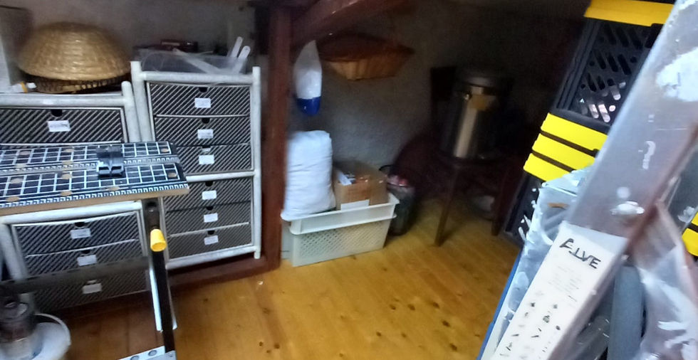 Ve druhém patře je chodba, obývací pokoj, ložnice, koupelna, kuchyň s krbem a komora.